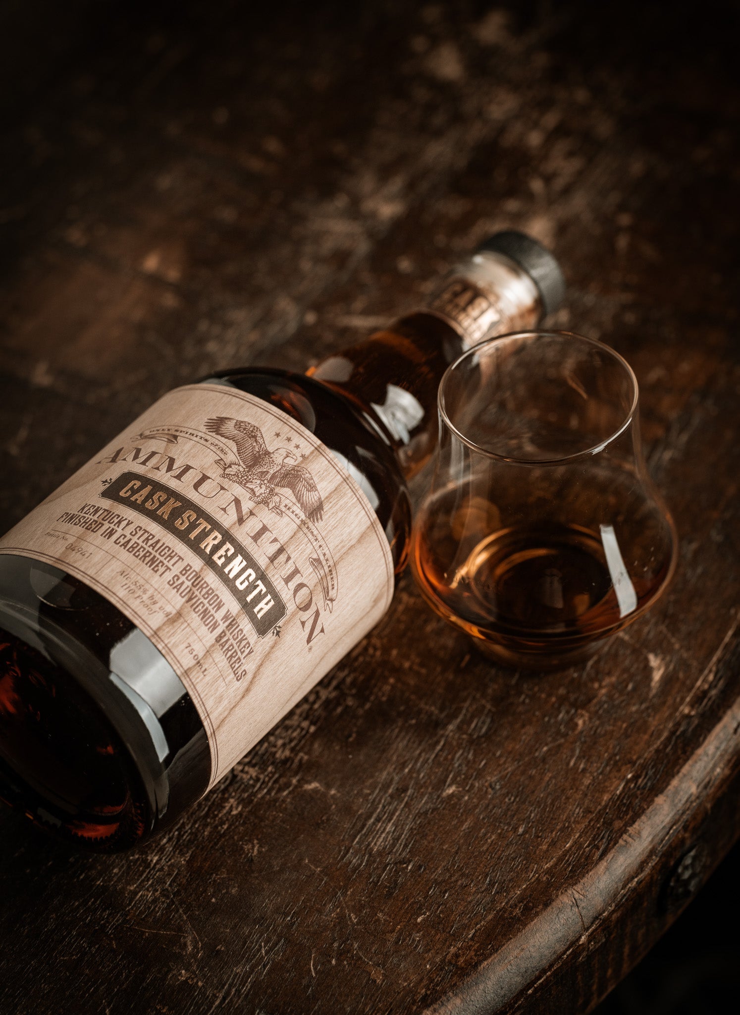 Adding our signature second barrel finish — aging six months in our French Bordeaux Cabernet Barrels which previously held our recent vintage of Ammunition Cabernet Sauvignon out of Alexander Valley — this bourbon truly finishes with complex chocolate cherries, subtle tannins and a noteworthy, sweet nose. Expect notes of sweet corn throughout.